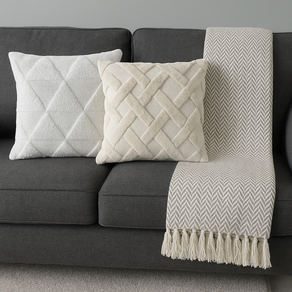 Complete your look with this matching home styling bundle — perfectly coordinated pieces to add comfort, texture, and style to any space. Ideal for sofas, beds, or cosy corners.